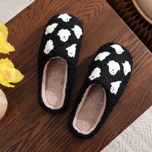 Halloween Slippers for Women, Ghost Slipper Bats Pumpkin Cookie Spider Web Fall and Winter Black Spooky House Shoes for Adult Men Indoor Outdoor, Cozy 7