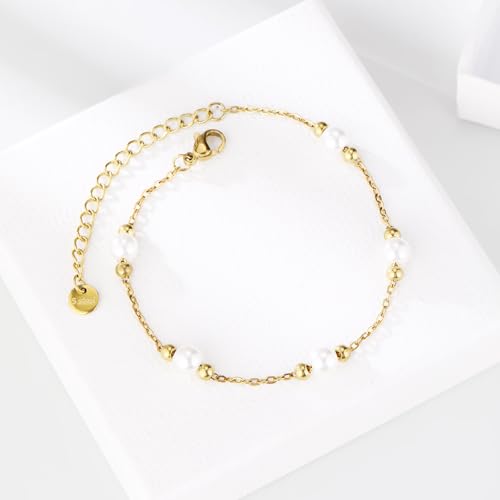 Gold Pearl Bracelets for Women Trendy 14k Gold Plated Dainty Pearl Beaded Bracelets Adjustable Chain Wedding Bridesmaid Bracelet Gold Jewelry Women Gifts Her 1