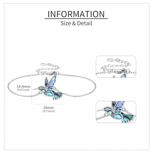 • ✨【Material】Genuine 925 Sterling Silver and Abalone Shell. Our hummingbird gifts for women is made of high-quality materials, no nickel, no lead, no cadmium, without any allergenic elements. Hummingbird bracelet sterling silver, not easy to fade, has a long-lasting luster.