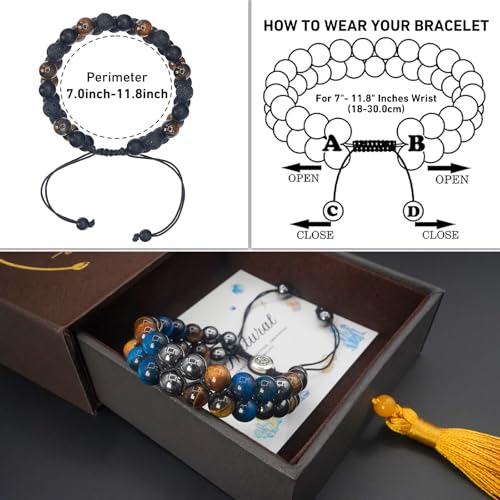 Triple Protection Energy Bracelet, Healing Crystals for Negative Energy Protection, Unisex Amulet with Obsidian, Tiger Eye, and Onyx Stones, Spiritual Jewelry for Men and Women, Healing, Manifestation, and Wellness 7