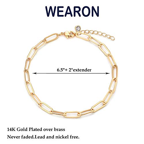 WEARON Gold Bracelet for Women 14K Gold Plated Snake Herringbone Figaro Cuban Bead Paperclip Cable Box Chain Simple Jewelry 4
