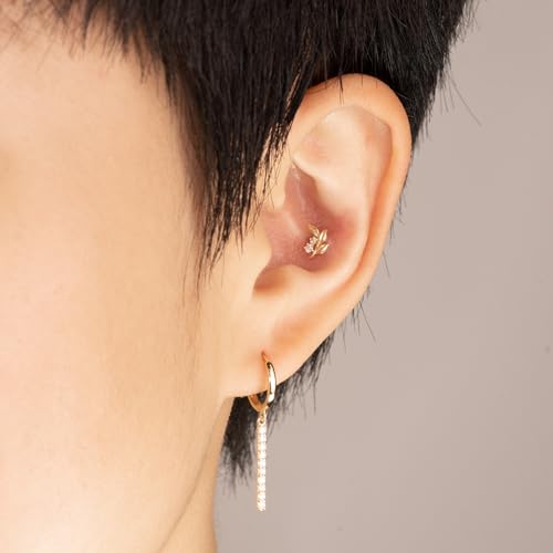 • VERSATILE FIT FOR MULTIPLE LOCATIONS – Perfect for cartilage, conch, tragus, or helix piercings, this stunning gold leaf earring is sold as a single stud. With the option of external or internal flat back closure, it ensures a comfortable and secure fit for all-day wear. Whether you're adding a touch of nature-inspired elegance to your ear stack or highlighting a single piercing, this earring provides the versatility and style to complement any look, enhancing your piercing collection .