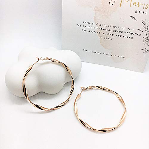 • 【Rose golden Hoop Earrings】: The diameter of this rose gold earrings for women is 50mm/ 2inches. Each weight is 0.14 ounces, and the surface is rose plated.