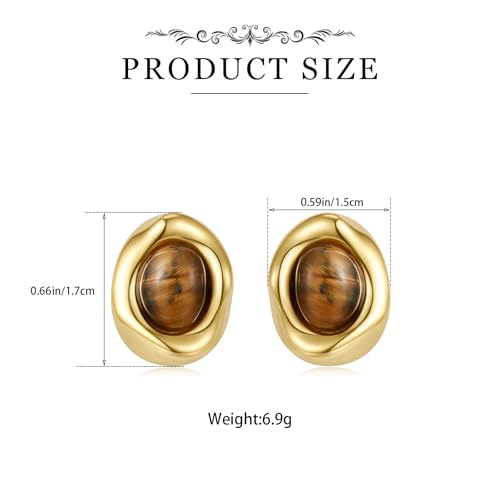 More information about Brown Earrings Circle Chunky Earrings for Women Trendy 18K Gold Plated Stud Hoop Stainless Steel Hypoallergenic