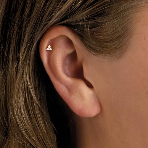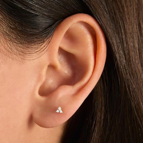 HOT ! Pure Collection by Ross-Simons Diamond-Accented 3-Stone Flat-Back Stud Earrings in 14kt Yellow Gold