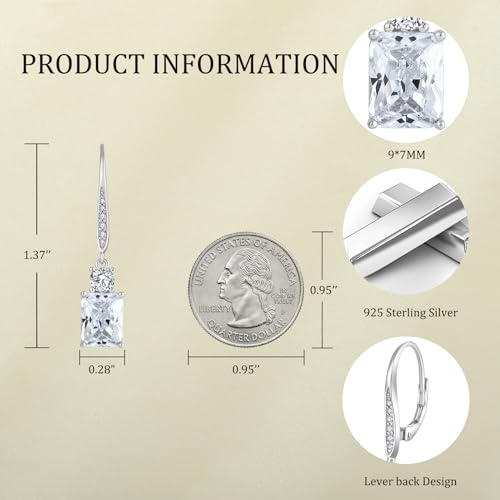 JO WISDOM Women Dangle Earrings,925 Sterling Silver Birthstone Leverback Earrings with 7 * 9mm Valentines Day Gifts for Her Jewelry Mothers Day Christmas Gifts for Women 6