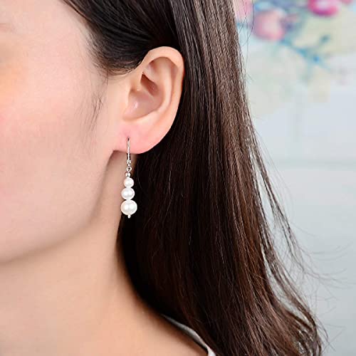 Sterling Silver Freshwater Cultured Pearl Drop Earrings Size 4-8mm Dangle Leverback Earring for Women 5