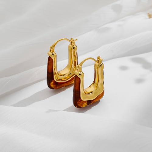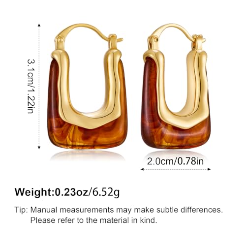 Acrylic Hoop Earrings for Women 14K Gold Plated Chunky Hoop Earrings Vintage Geometric Resin Fashion Jewelry Gifts 6