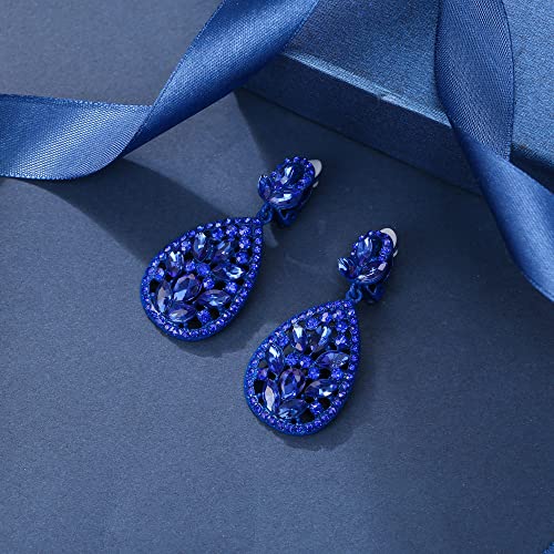EleQueen Clip On Rhinestone Crystal Wedding Bridal Bohemia Teardrop Chandelier Dangle Earrings for Women 6