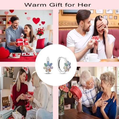 More information about S925 Sterling Silver Earrings for Women Trendy Hypoallergenic Drop Dangle Huggie Earrings Colorful Small Hoop Star Moon Earrings