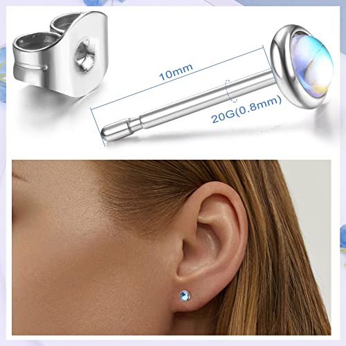 • 【Small Stud Earrings Design】Surgical steel post Gauge: 20G=0.8mm, post length: 10mm. cubic zirconia/opal/turquoise/moonstone size:4mm,regular size, small stud earrings for women men, can be worn alone or stacked, butterfly buckle design, easy to put on,take off and adjusted to your desired position.