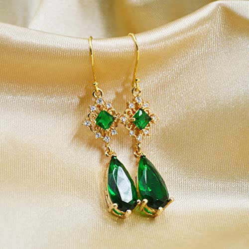 • ♥ 【Beautiful and Lightweight】These vintage green emerald dangle earrings measure: 1.25"(3.2cm)*0.4"(1cm), stand out and beautiful. Weight: 0.14 oz (4 g) (pair of earrings), lightweight and comfortable to wear for long periods of time. Ear hook material: 925 silver plated 18K gold (nickel free, hypoallergenic, not easy to fade), pendant material: imitation emerald + brass gold plated + brass 18k gold plated (nickel free, not easy to fade)