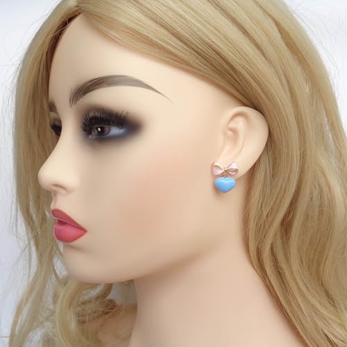 Navachi 18k Gold Plated Bow Heart Colorful Candy Enamel Womens Fashion Elegant Stud Earrings 6