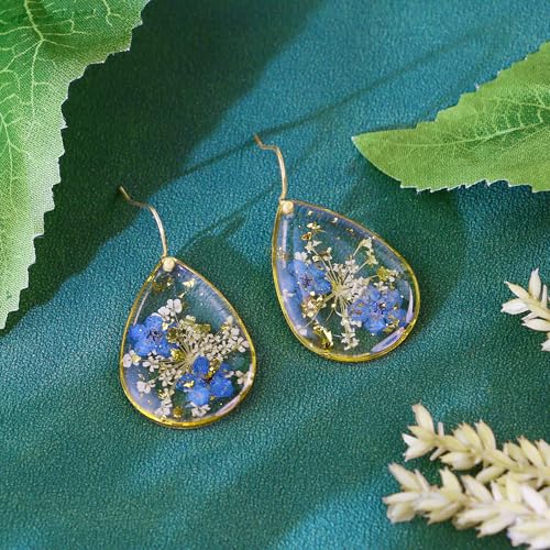 • Genuine Flower Craft: Each pair of our pressed flower earrings features unique forget-me-not flowers meticulously crafted using real flower craft, with 14K gold sterling silver ear hooks, nickel or lead free, ensuring a low allergy risk. As natural blooms interact with environmental elements over time, subtle color evolution may occur, creating unique vintage charm.
