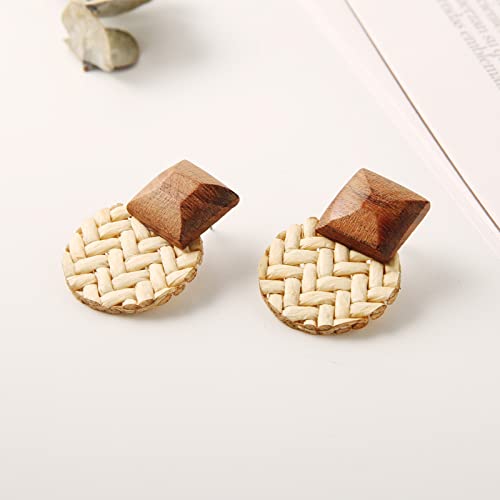 More information about STWTR Women's Natural Wood Earrings Variety of Fashion Earrings Love Minimalist Retro Earring Set Natural Wood Hollow Round Earrings Arc