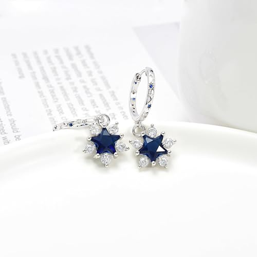 HOT ! Blue Star Earrings for Women - Sterling Silver Hoop Huggie Earrings Hypoallergenic White Dark Blue Cubic Zirconia Star Moon Sun Earrings Jewelry Gifts for Teen Girls for Christmas