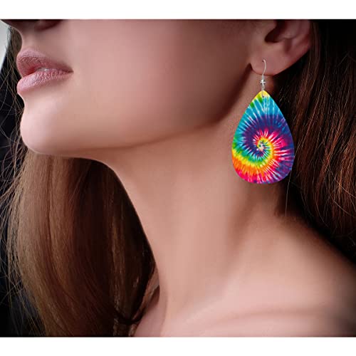 HOT ! Zokola Tie Dye Drop Dangle Earrings, Colorful Hippie Swirl Tie Dye Earrings Charm Jewelry For Womens Friends, Lightweight Faux Leather Drop Dangle Earrings Set