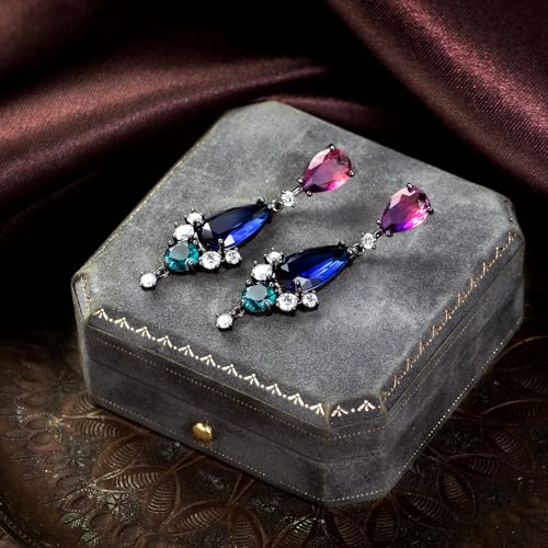 Teardrop Crystal Dangle Drop Earrings for Women Colorful Flower Chandelier Iridescence Cubic Zirconia Vintage Statement Wedding Earrings Mom Wife Prom 6