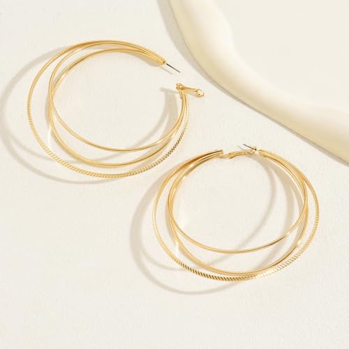Dainty Big Large Circle Dangle Earrings for Women Boho Layered Hoop Drop Earrings Geometric Three Layers Round Statement Earrings Jewelry Gifts 5