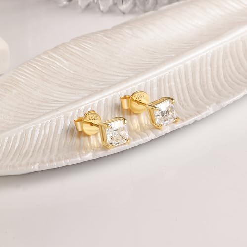 Moissanite Stud Earrings for Women 14K Gold Plated Sterling Silver Stud Earrings 6mm 2ct Asscher Cut D Color VVS1 Moissanite Stud Earrings Lab Created Diamond Earring Studs 1