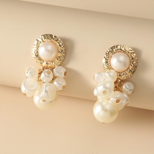 HOT ! Chunky Geometric Cluster Pearls Drop Earrings, Baroque White Red Big Pearl Dangle Statement Earrings Trendy Exaggerated Pearls Jewelry for Women