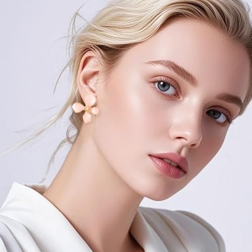 • Beautiful Design: The earrings feature a pink floral design with golden rings, and imitation pearls at the center, offering a delicate and feminine touch. Inspired by the beauty of nature, they possess a aesthetic that enhances any outfit with a touch of sophistication.