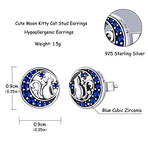 • ♥Hypoallergenic Earrings: The moon cat earrings are made of 925 sterling silver and blue cubic zirconia, 100% nickel-free and lead-free, effectively hypoallergenic, it is safe for your sensitive ear. You can comfortably wear the sterling silver cat earrings long time