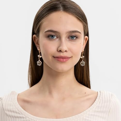 • Crafted with high-quality materials and exquisite workmanship.The "rose" drop earrings for women is made of copper plated with real gold, ensuring long-lasting color retention with a durable electroplated layer.Ear pins are made of 925 silver, minimizing the risk of allergies.Intricate detailing is evident throughout, with the "flower" being three-dimensional and meticulously crafted.