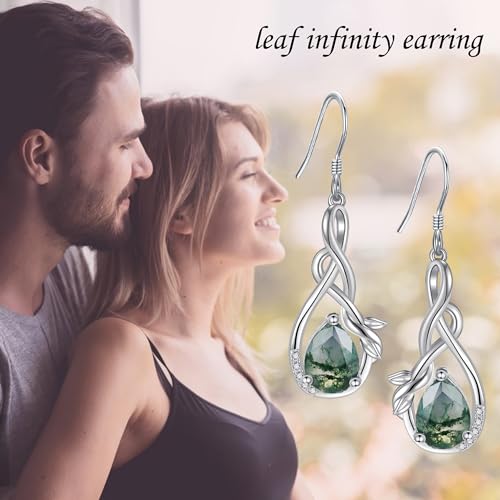• 💖DESIGN CONCEPT: The moss agate earrings features a pendant made of moss agate, a type of agate that has a unique pattern of green inclusions. Moss agate is said to encourage tranquility and emotional balance. combine with the infinity symbol moss agate earrings means love is eternal exist, will not fade away.