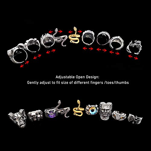• ADJUSTABLE VINTAGE RINGS: All of them are adjustable open design. Stacking punk ring jewelry for women, men, girls. Gently adjust the rings to fit the size of different finger or toe or thumb, make it comfortable wearing touch