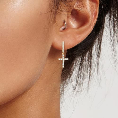 HOT ! 14K Gold Plated Cross Earrings for Women Men, CZ Cross Dangle Earrings Hypoallergenic Jewelry Gift