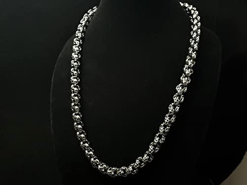 • 232 Highly detailed skulls linked together on 57 individual skull links to make a very cool stainless steel chain link necklace. Trendy polished silver vintage styling that wears well whether your look is punk, goth, rock, biker or just your favorite t-shirt. This high quality necklace definitely has a multi-generational appeal.