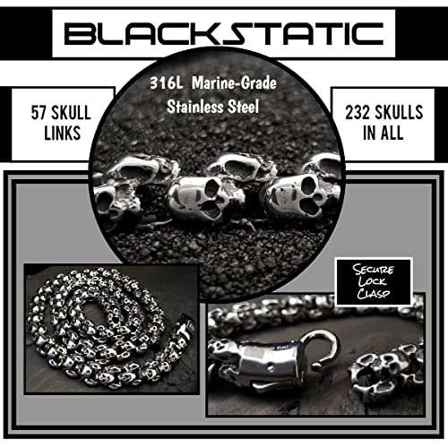 Birch & Bliss Blackstatic Collection - Skull Link Necklace In Metal Gift Box – Solid 316L Marine Grade Stainless Steel 26" for Men and Women. 1