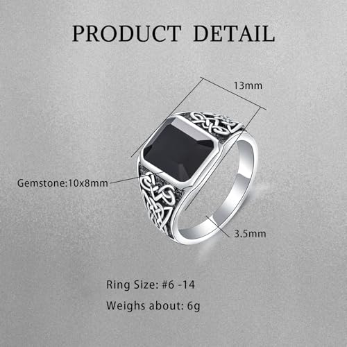 • 3. Ring Specifications: Made of 925 sterling silver with black onyx stone. Weighs about 6g. No fading, no rusting, friendly to sensitive skin. Available in all sizes 6 to 14, including half sizes. Secure and comfortable for all-day wear.