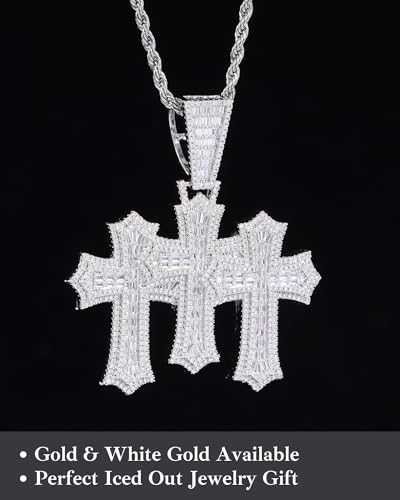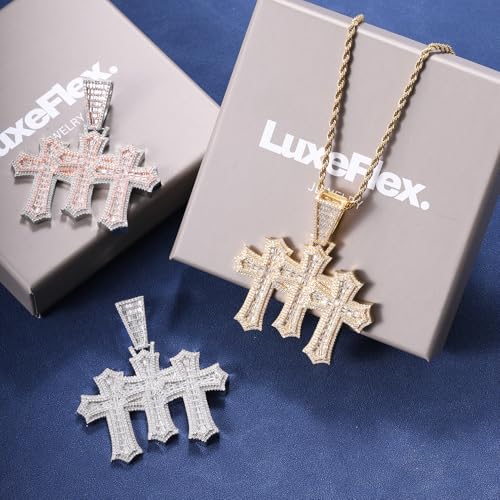 More information about LuxeFlex Iced Out Baguette Diamond Cross Pendant, 14K Gold Plated Religious Three Stacked up Gothic Cross Necklace, Hip-Hop Jewelry for Men Women