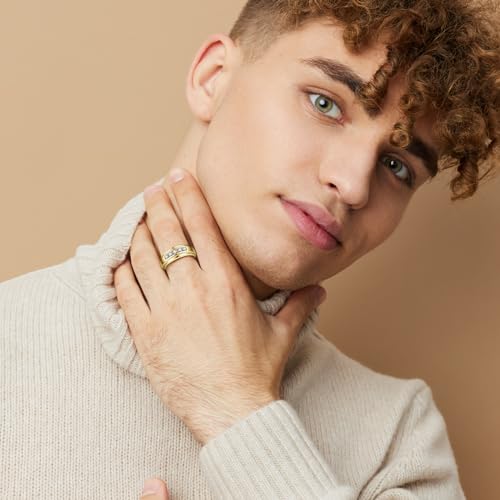 Mens Wedding Band 14K Gold/White Gold Plated Cubic Zirconia Rings for Men Engagement Rings Channel Set Classic Round Cut 8mm Promise Wedding Ring for Him Size 8-12 4