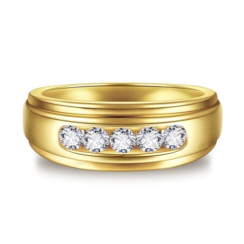 HOT ! Mens Wedding Band 14K Gold/White Gold Plated Cubic Zirconia Rings for Men Engagement Rings Channel Set Classic Round Cut 8mm Promise Wedding Ring for Him Size 8-12