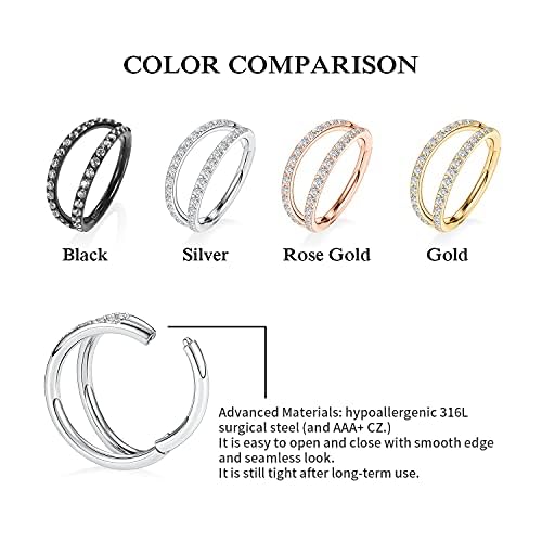 AROWRO Helix Rook Lobe Earrings 16G 8mm 10mm 316L Surgical Steel 3Pcs Double Triple Open Stack Sleeper Earring Daith Cartilage Tragus Piercing Jewelry Septum Clicker 3
