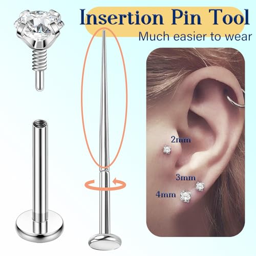 • ✿[Item Contain]: 2Pcs tragus piercing jewelry, 1pc insertion pin tool help you to wear, AAAAA shiny zirconia lip piercing jewelry, affordable nose studs for you.