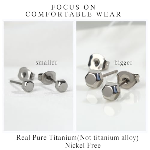 • HEXAGON EARRINGS FOR MEN: Size: 3.7mm *3.7mm, dainty and small. Titanium earrings with hexagon shape which is simple and classic, lightweight and comfortable to wear