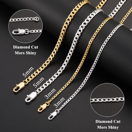 Avotto S925 Sterling Silver 3mm/5mm Thick Cuban Chain for Men Sturdy Mens Silver Gold Chain Non-Fading Cuban Chain Necklace Valentine Jewelry Gifts for Him 16/18/20/22/24/26/28 Inch 6