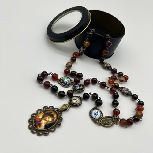 8MM Natural Agate Stone Rosary Beads Catholic Seven Sorrows Rosary Beads Necklace Seven Sorrows of Mary Rosary Chaplet 7