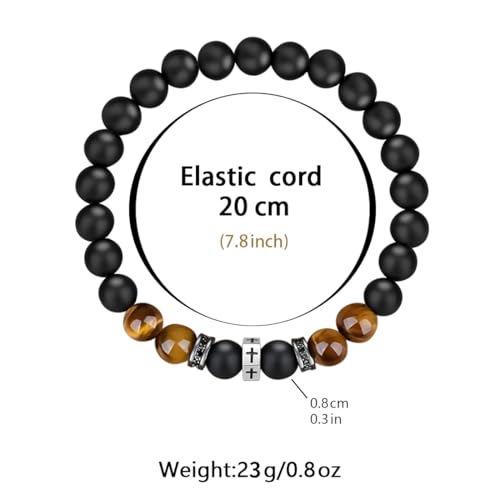 8mm Tiger eye bead Christian bracelet Black Cross Beaded Bracelet Religious men's jewelry gift 6