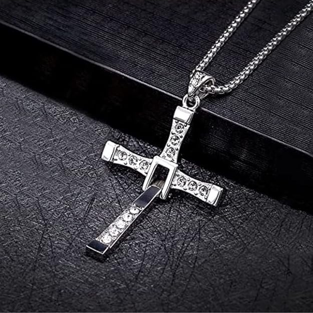 HOT ! Dominic Toretto Necklace with Small Diamonds Silver, Ozzy Osbourne Cross Necklace, Dom Toretto Cross Necklace, Stainless Silver Cross Chain for Men, Mens Cross Necklaces