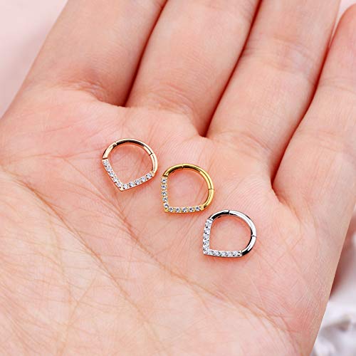 HOT ! CM Crareesi Mania Teardrop Daith Earrings Hoop Hinged Clicker Rings 16G Helix Cartilage Earrings Hoop 316L Stainless Steel CZ Helix Tragus Daith Septum Clicker Jewelry
