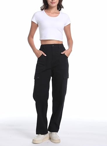 Tronjori Womens Cargo Pants High Waisted Casual Utility Trousers Stretch Straight Leg Streetwear Y2K 2
