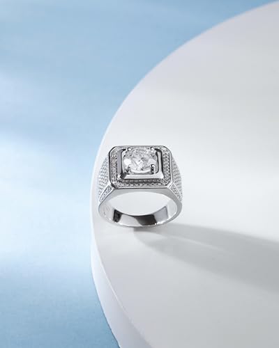 Men Moissanite Ring 2-5 Carats Solitaire Moissanite Wedding Sterling Silver with 18K White Gold Plated D Color VVS1 Clarity Brilliant Round Cut Moissanite Engagement Anniversary Jewelry for Men Size 7-12 6