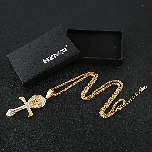 HZMAN CZ Eye of Horus Egypt Protection Pendant Coptic Ankh Cross Religious Stainless Steel Necklace 7
