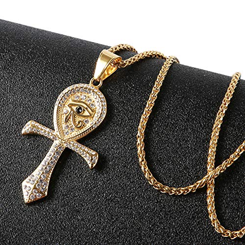 More information about HZMAN CZ Eye of Horus Egypt Protection Pendant Coptic Ankh Cross Religious Stainless Steel Necklace