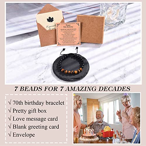 • 70th Birthday Gifts for Men: Seventy is a huge milestone worth celebrating. Are you looking for the thoughtful gift to make his 70th birthday one to remember? Look no further than our natural stone bracelet, 7 beads symbolize 7 fabulous decades, simple and stylish design. Best birthday gifts for a 70 year old man.